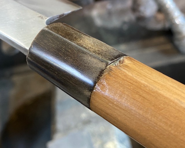 (^^;本来の薄刃の形に復活しましたが・・薄刃包丁の意味も知らず・・説明をし・・普段のきざみ物に使える刃付けにしました。