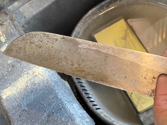 (^^;砥石が切っ先まで当たっていない奇妙な筋が入っているのが分かるかと思います。↓↓